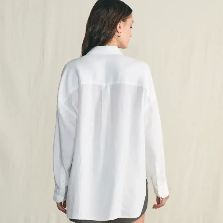 Naturally cooling, lightweight, and washed for incredible softness, this premium linen button up is an iconic summer staple. The loose, relaxed cut is ideal for versatile styling options – tie in a knot or wear open with a tank for that carefree summer mood.