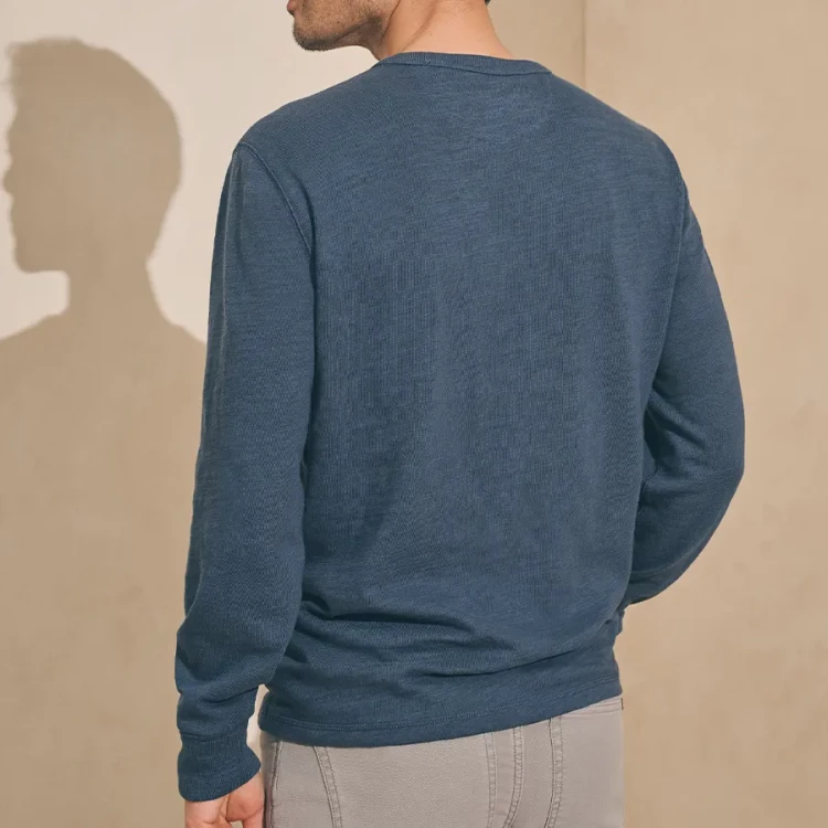 Faherty's slub knit fabric is crafted from high-quality grown cotton and combed for exceptional texture and softness. The perfect layer does all the work of a sweatshirt — featuring a classic relaxed fit, knit ribbing at the collar, cuffs, and hem — without the added weight. Get one, and feel what we're talking about.